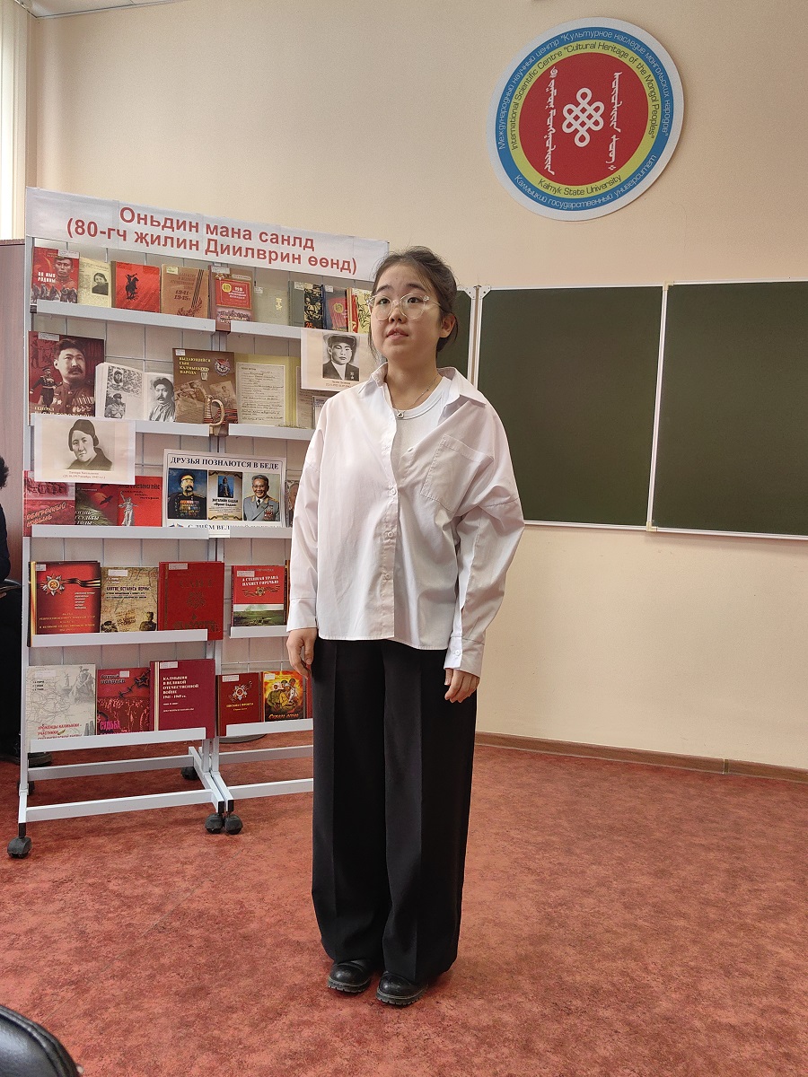 2025 год объявлен в России Годом защитника Отечества. Это не просто календарная дата, а символ национального единства и патриотизма. Вся страна будет праздновать 80-летие Великой Победы. В рамках юбилейных мероприятий, посвященных этой знаменательной дате, научная библиотека приняла участие в конкурсе чтецов, проведенном в институте калмыцкой филологии и востоковедения.