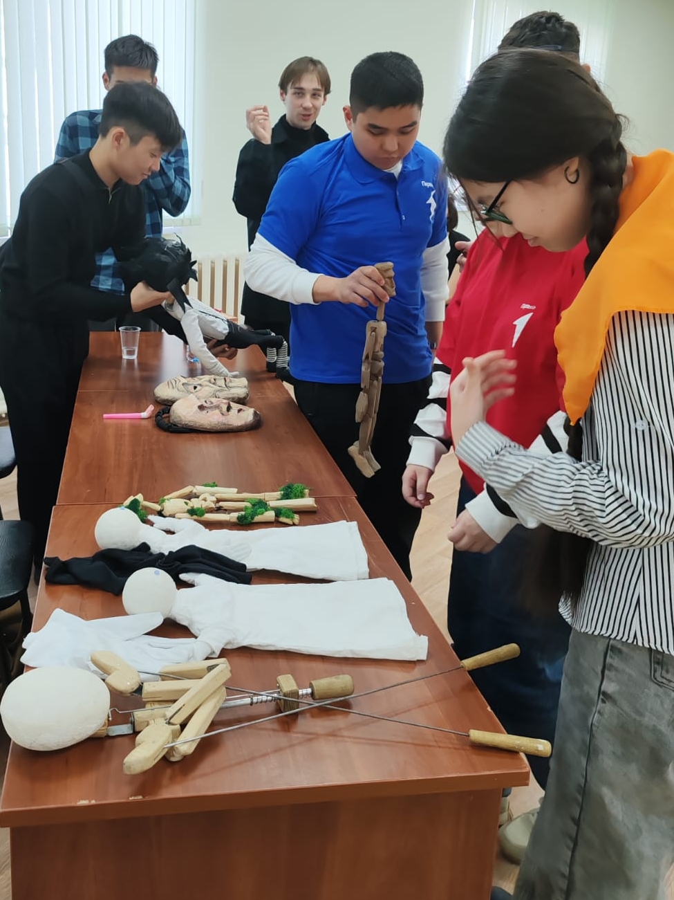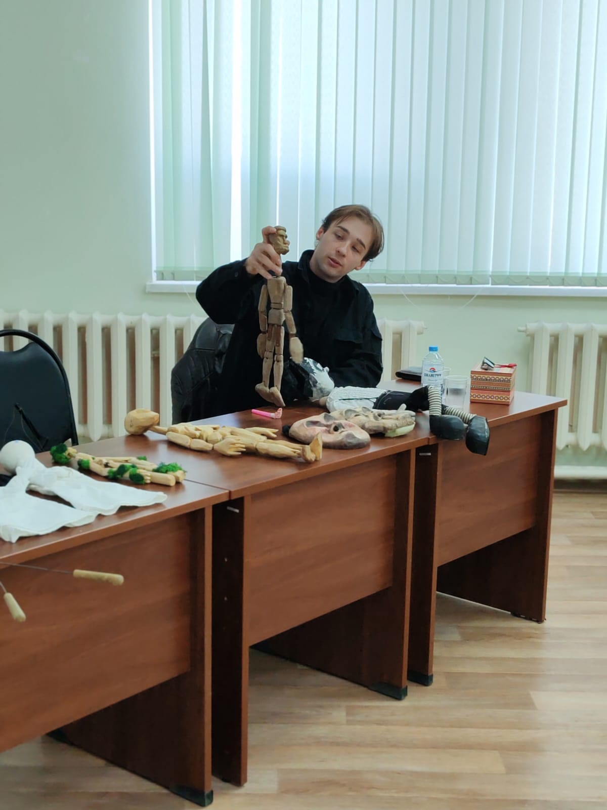 Репетиции - это кропотливый труд, требующий слаженности и взаимопонимания всего творческого коллектива. Художники, музыканты, актёры-кукольники работают над созданием единого целого, ведь зритель должен поверить в чудо, происходящее на сцене. Ребята узнали о том, как за кулисами кипит жизнь, скрытая от глаз публики: здесь кукольные персонажи ждут своего часа, бережно уложенные в ящики и на полки, словно спящие волшебные существа. Участникам встречи представилась замечательная возможность узнать много интересного о кукольном театре и освоить актерское мастерство у настоящего профессионала.